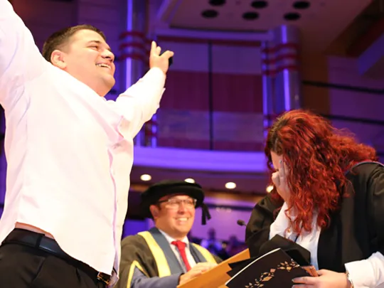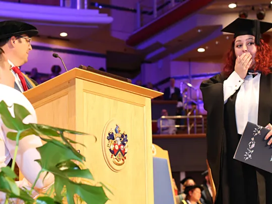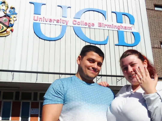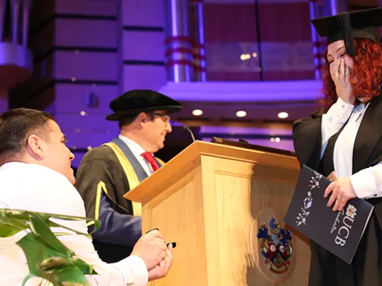A University College Birmingham student had double cause for celebration on her graduation day – after her boyfriend amazed her by proposing on stage at the ceremony.