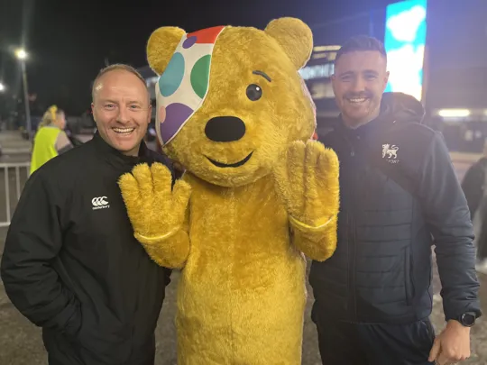 L-R: Gareth Bate, Pudsey Bear and Callum Davidson