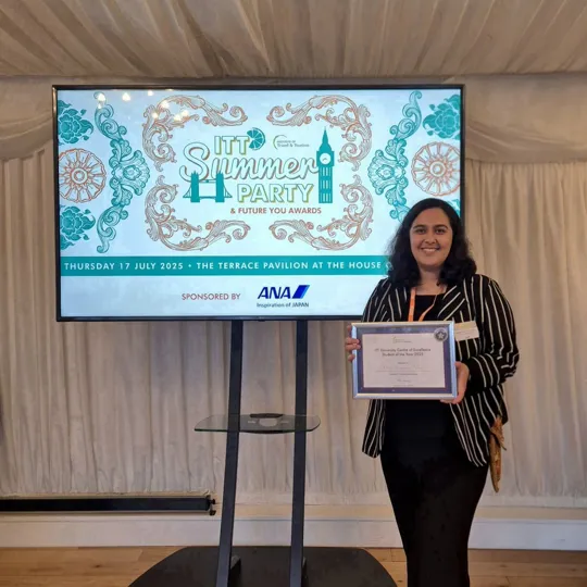 Hospitality with Tourism Managment MSc student Elham Torbati won the Institute of Travel and Tourism (ITT) Student of the Year for 2025, and was presented with her award at a prestigious summer party at the Houses of Parliament.