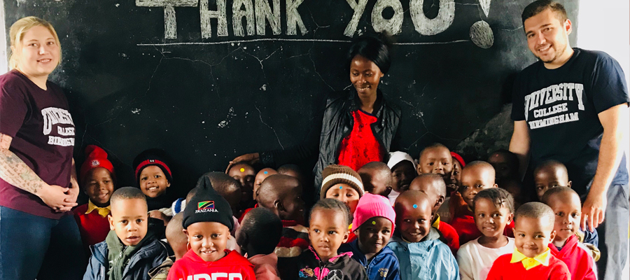 Jack Gameson and Shannan Howell will graduate next month, Jack with a BA (Hons) in Culinary Arts Management and Shannan with a BA (Hons) in Sport and Fitness Studies. After finishing their studies, they spent four weeks helping the local community of Arusha in Tanzania.