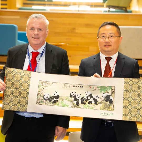 In a heartfelt gesture of cultural exchange and cooperation, Sichuan University gave the University a stunning piece of hand-embroidered panda wall art. This exquisite artwork not only showcases the fine craftsmanship and artistic traditions of Sichuan, the home of the giant panda, but also symbolises the deepening bond between the two institutions.