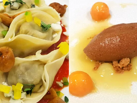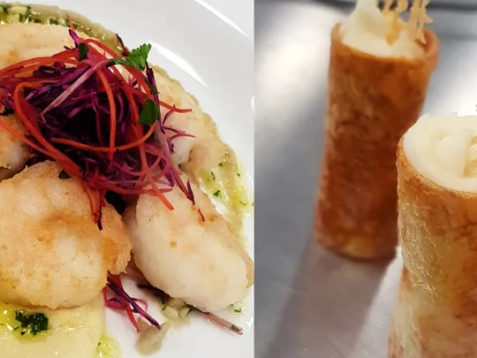 Luke served up a pan-seared pavé, spiced salmon tartare, orange beurre blanc, raisin puree, quinoa and pumpkin seed coral with a potato cup crisp and puree. This was followed by a dessert of tulsi-infused chocolate mousse, papaya, apple, lemon tuile, biscuit crumb and caramel sauce.