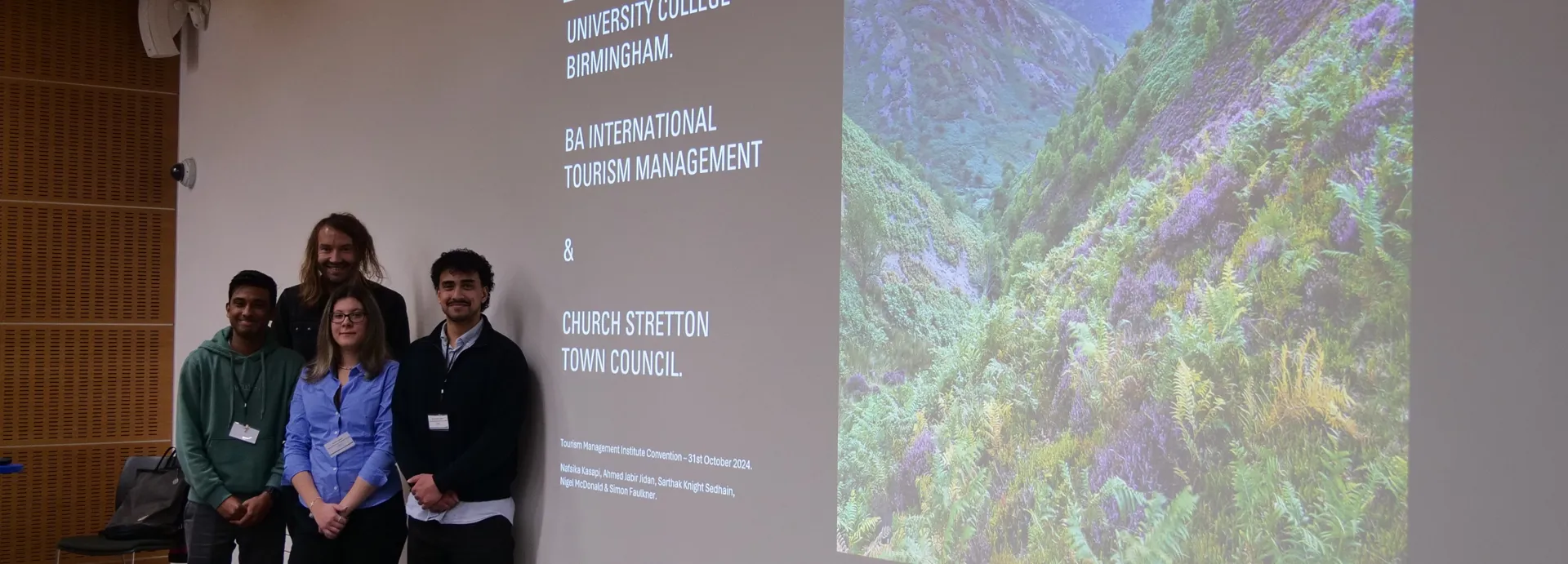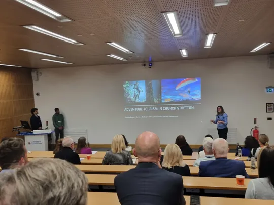 Nafsika Kasapi, Ahmed Jabir Jidan, and Sarthak Kant Sedhain represented the group from the BA (Hons) International Tourism Management course, and discussed their role in the creation of a new tourism strategy for the village of Church Stretton, which was included as part of Shropshire on ABTA's list of 'Must Visit' destinations for 2023. It was the first time a UK location had formed part of the list.