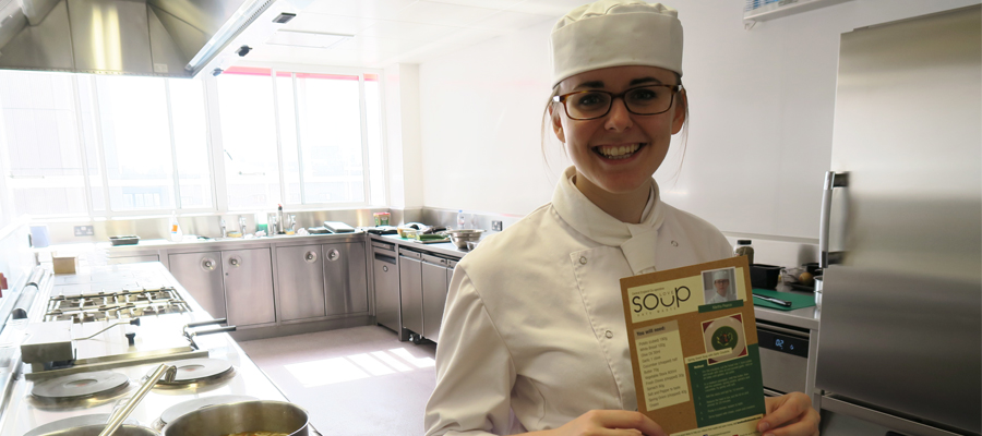 The competition was run in conjunction with the Love Food Hate Waste campaign, which aims to change the nation’s kitchen habits. All students on the third year Culinary Arts Management course were invited to compete. After submitting their suggestions, seven battled it out in a cook-off to find the best soups.