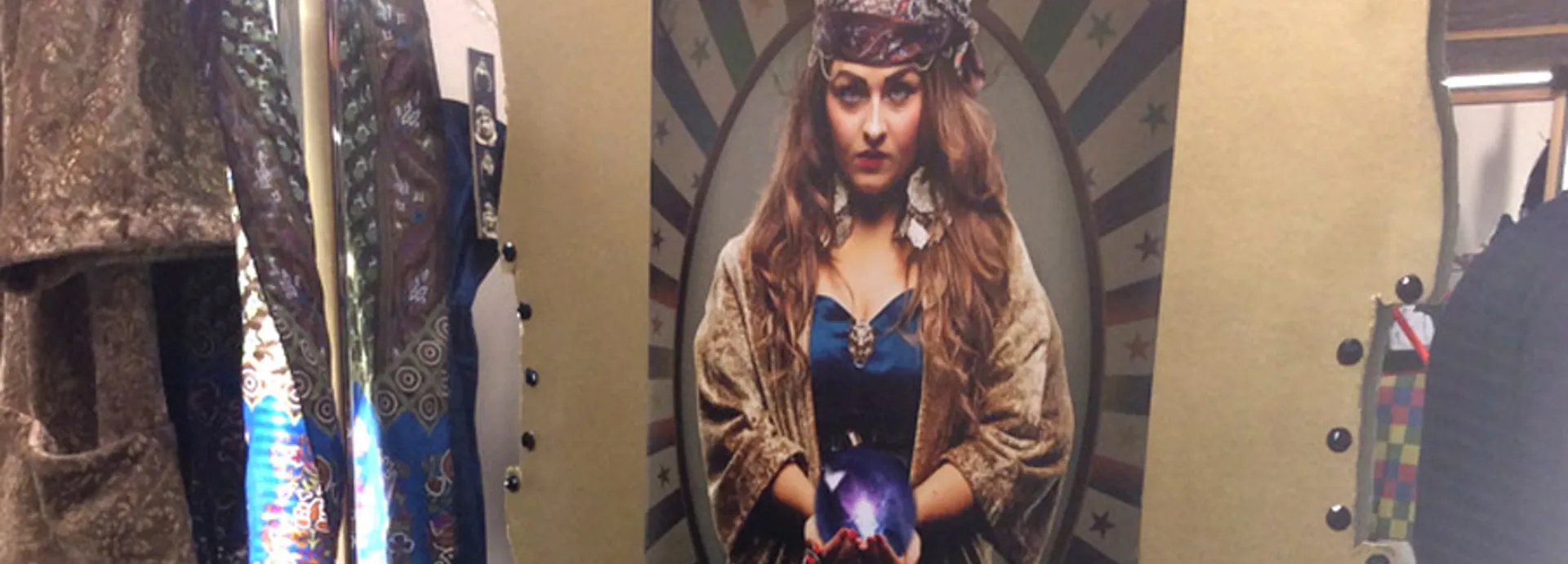On the day of their photo shoot, which coincided with a UCB open day, the students transformed a studio into a circus tent and made their whole operation seem like a ‘behind the scenes’ event. Since their chosen theme was based on the circus, each student sourced their own models and dressed them as classic big top acts: a ringmaster, fortune teller, magician, clowns, showgirl, and mime artist. The group designed all the costumes and make-up.