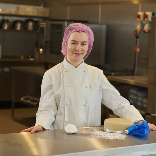Katie completed her Level 2 Bakery and Level 3 Apprenticeship before progressing onto the degree, also teaching the University’s Young Bakers Academy for 14 to 15-year-olds.
