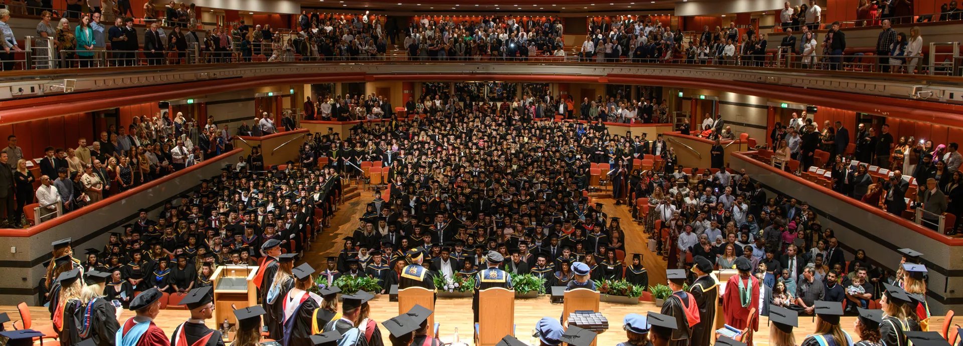 After graduates have crossed the stage, they will not be allowed to leave early, as they will be directed back to their seats. They will not return to the same seat they sat in earlier. For this reason, graduates will not be able to bring a handbag or any other personal items into Symphony Hall with them. These can be left with a member of the family or a friend for the duration of the ceremony. An invitation and further details will be sent to students prior to the ceremony.