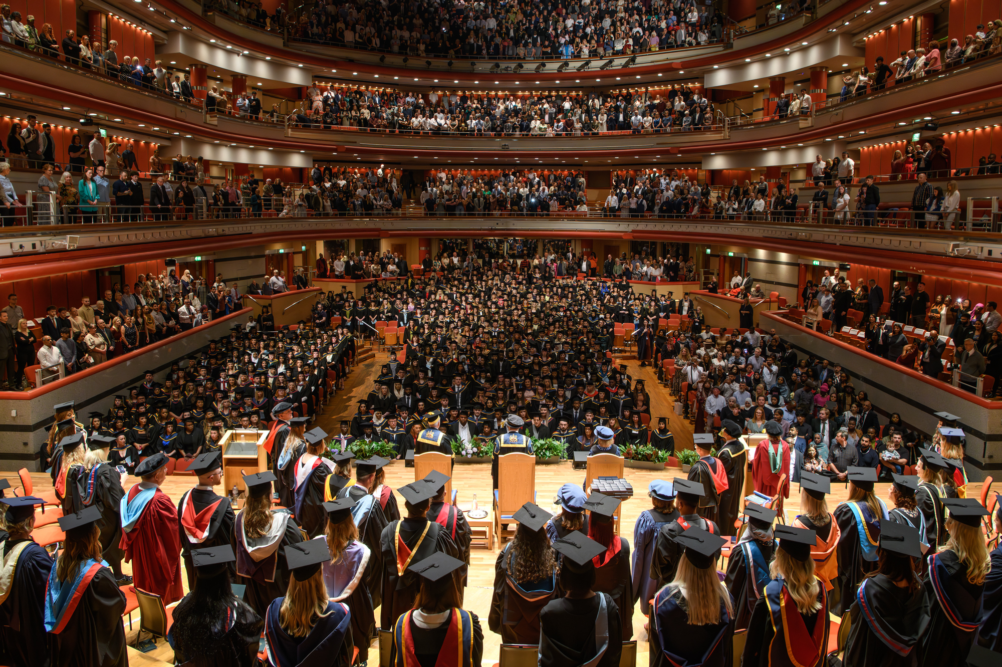 After graduates have crossed the stage, they will not be allowed to leave early, as they will be directed back to their seats. They will not return to the same seat they sat in earlier. For this reason, graduates will not be able to bring a handbag or any other personal items into Symphony Hall with them. These can be left with a member of the family or a friend for the duration of the ceremony. An invitation and further details will be sent to students prior to the ceremony.