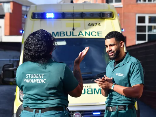 On top of £5,000 free Cost of Living Allowance you get from us, additional support from the UK government is available to paramedic science students, which includes a non-repayable payment of £5,000 to eligible students each academic year, and additional payments worth up to a total of £3,000 to help students cover childcare costs. Find out more.