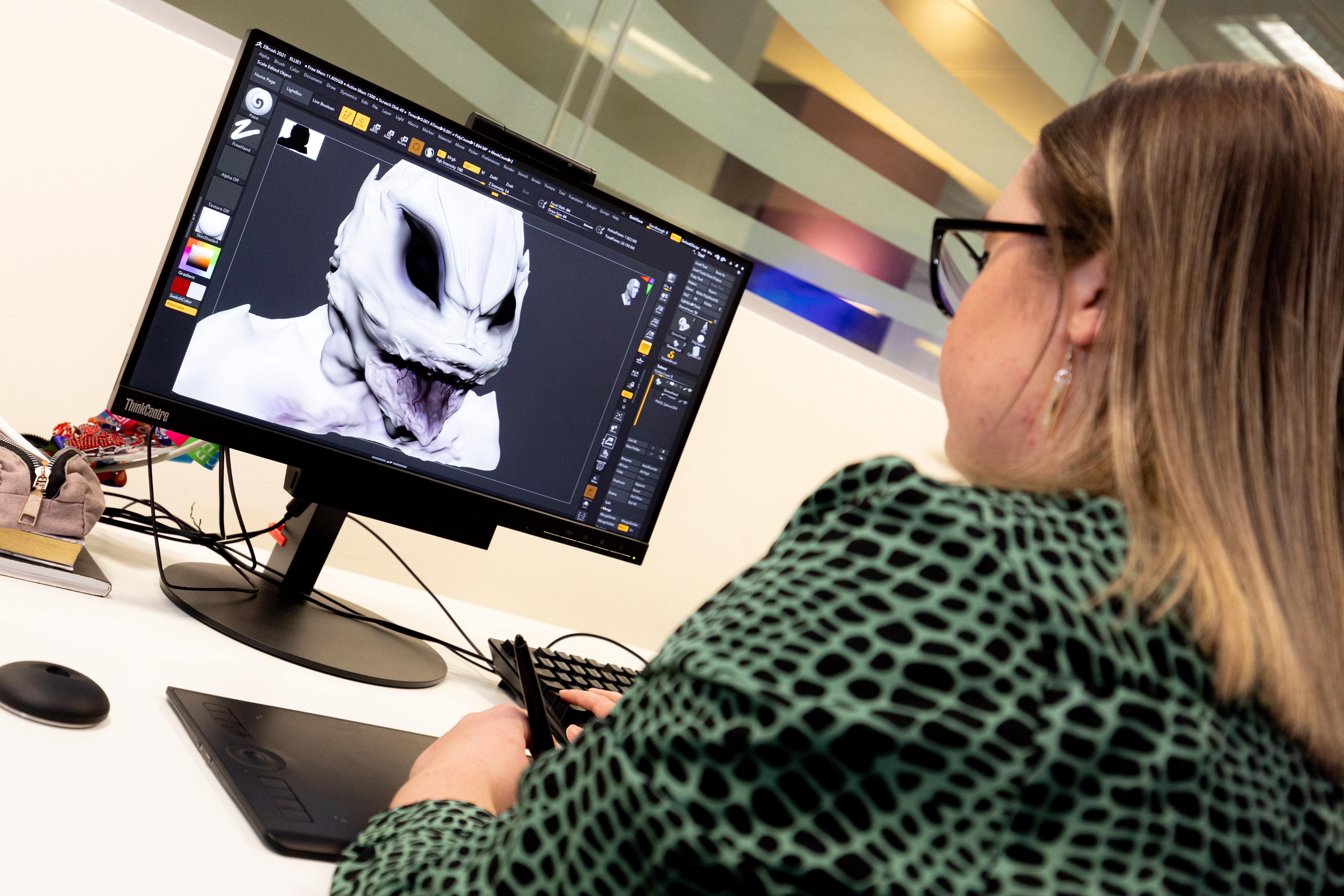 ZBrush is a digital sculpting software widely recognised and used in the entertainment industry. This module builds upon the two-dimensional digital design skills learnt at level 4, and provides you with fundamental skills in three dimensional modelling and sculpting to effectively communicate character and creature concepts in industry. You will gain knowledge of how to use the ZBrush interface and tools effectively through a combination of theoretical lectures, practical workshops and project-based learning. Emphasis will be placed on industry-standard workflows, creative problem-solving and artistic expression.